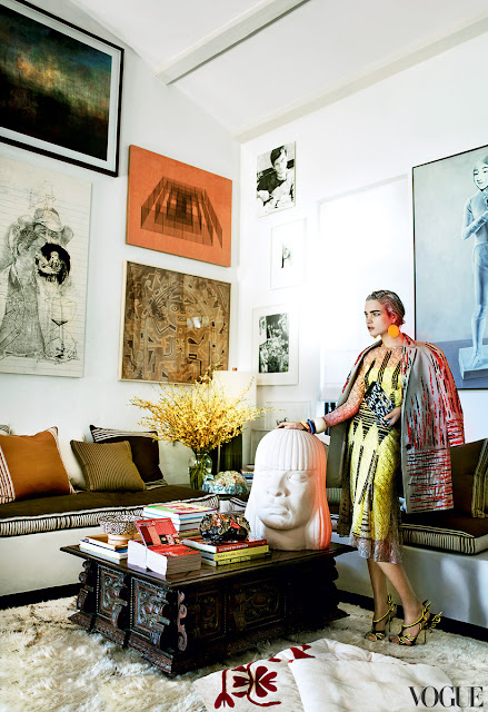 The entry table was covered in Celerie's own black and white fabric for Schumacher and was a perfect complement to the black and white photography hung above.